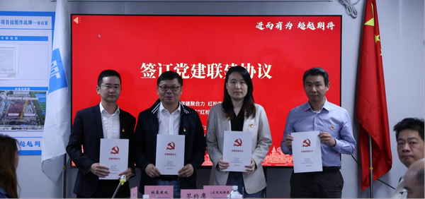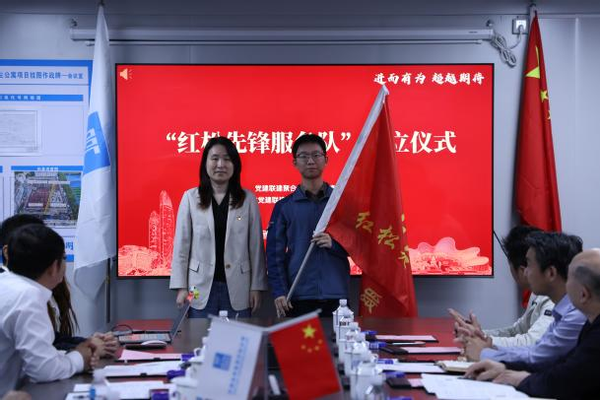 仪式上,各方代表共同签署党建联建协议,并成立“红松先锋服务队”,长风新村街道办事处副主任顾旻娜为服务队授旗。该服务队由项目部党员和共青团员组成,将通过“降噪护学”“工友关爱”“校社共建”等专项工作,以务实行动服务社区、共促和谐。