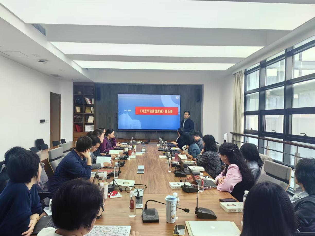 会上,副院长王静,党委委员、俄语系系主任胡学星以“锚定教育强国目标,践行育人、学术、服务三大卓越”为主题进行领学,从不同角度解读了《习近平谈治国理政》第五卷的总体框架与主要特色,重点阐述其中关于一体推进教育科技人才事业发展等重大论断的理论内涵与实践要求。 胡学星结合新时代外语学科的使命担当,从全书十八个专题中梳理出与外语学科直接相关的六大专题并分享了学习体会,他表示,这些重要论述为外语学科转型提供了根本遵循,为学科高质量发展指明了实践方向。 王静还传达了学校推进卓越育人、重塑课程体系的整体思路与具体举措,结合区域国别研究、智能外语教育、计算语言学、文学与翻译四大方向,深入探讨卓越外语人才培养改革路径。 围绕“如何以‘重服务,强贡献’为导向,推进学科高质量发展”的议题,与会人员结合领学内容展开研讨,就学院“十五五”规划中学科布局、人才培养、科学研究、社会服务等重点领域提出建议。 院长兼党委副书记杨延宁谈到,近年来外语学科紧密对接国家战略需求,主动谋划并布局学科重点发展方向,当前已进入稳步发展阶段;“十五五”期间,学院工作要进一步提效增能,全力跑出改革发展“加速度”,实现学科发展新“突破”。 副院长赵朝永分析了外语学科软科排名变化情况,表示将进一步推动学科内涵建设,以国家战略需求为牵引,以服务贡献为导向,立足外语学科传统优势,积极探索学科转型路径与内涵式发展新方向。 副院长赵刚结合研究生培养工作,表示卓越育人需精准把握教育、科技、人才 “三位一体” 协同融合发展的战略部署,进一步优化研究生培养方案,使研究生培养既能成为学科内涵建设的支撑点,也能成为学科服务国家战略与社会需求的发力点,为外语学科高质量发展提供有力支撑。 韩春红在总结时表示,《习近平谈治国理政》第五卷是全面系统反映习近平新时代中国特色社会主义思想最新成果的权威著作,蕴含着破解发展难题的“金钥匙”;全院上下要持之以恒读原著学原文悟原理,切实做到学思用贯通、知信行统一,深刻领会《习近平谈治国理政》第五卷的丰富内涵,用习近平新时代中国特色社会主义思想武装头脑、指导实践,紧扣“重服务,强贡献”主线,将学科发展与国家战略、地方需求紧密对接,在文明互鉴中彰显学科价值,为中国式现代化注入跨文化动力。