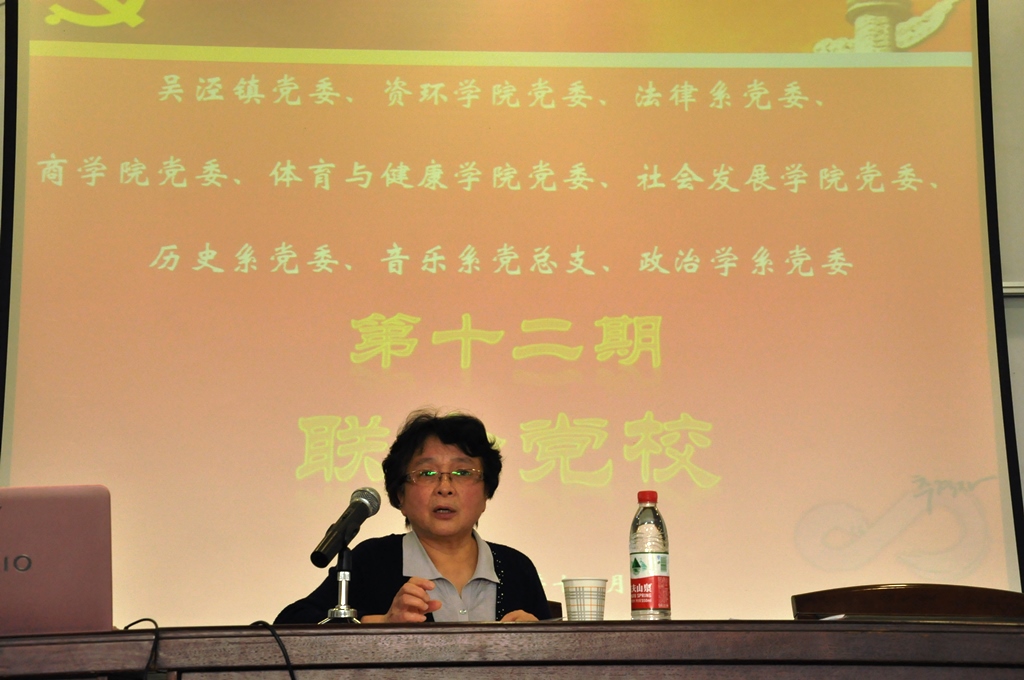 11月6日下午,吴泾镇党委、资源与环境科学学院党委、法律系党委、商学院党委、体育与健康学院党委、社会发展学院党委、历史学系党委、音乐学系党总支、政治学系党委等九单位第十二期联合党校的第一堂党课在闵行校区3教109室举行,原校党委副书记杜公卓老师和校党委副书记、副校长林在勇老师担任主讲,历史系党委副书记李炜菁老师主持了本次党课,约240名入党积极分子参与了此次学习。