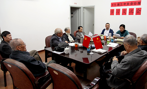 离休干部党委学习领会党的十八届三中全会精神 十八届三中全会闭幕当晚,许多老同志都早早守候在电视机旁收听全会公报。学习会上,大家拿着登有公报的各种报刊,纷纷发表自己的感想体会。同志们认为,十八届三中全会是我党在建设中国特色社会主义道路上的又一个重要里程碑,全会提出的全面深化改革的指导思想和原则,以及一系列重大举措和部署,令人振奋和鼓舞。大家表示,要深入领会、学习贯彻全会精神,在政治上与党中央保持一致,为早日实现中国梦而尽自己的一份努力。