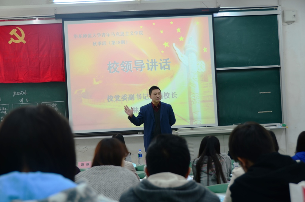 11月13日,青年马克思主义学院秋季班(第18期)在中山北路校区新一教室开班。校党委副书记兼副校长林在勇、学工部部长潘靓、组织部副部长徐继玲、学工部挂职副部长张高祥出席了本次活动。开班仪式由潘靓主持。 徐继玲做开班动员。她认为,中国共产党从建党初期的53名党员到现在全国的8千多万,经历了从无到有、从小到大、由弱到强的过程,期间有无数有志之士不懈为之努力奋斗。目前,在华东师范大学1万4千多名本专科生中,学生党员有1100多名,她希望本届青马院的全体学员能把学习动力转化为内在动力,争做先锋模范,通过培训有所收获有所提高。