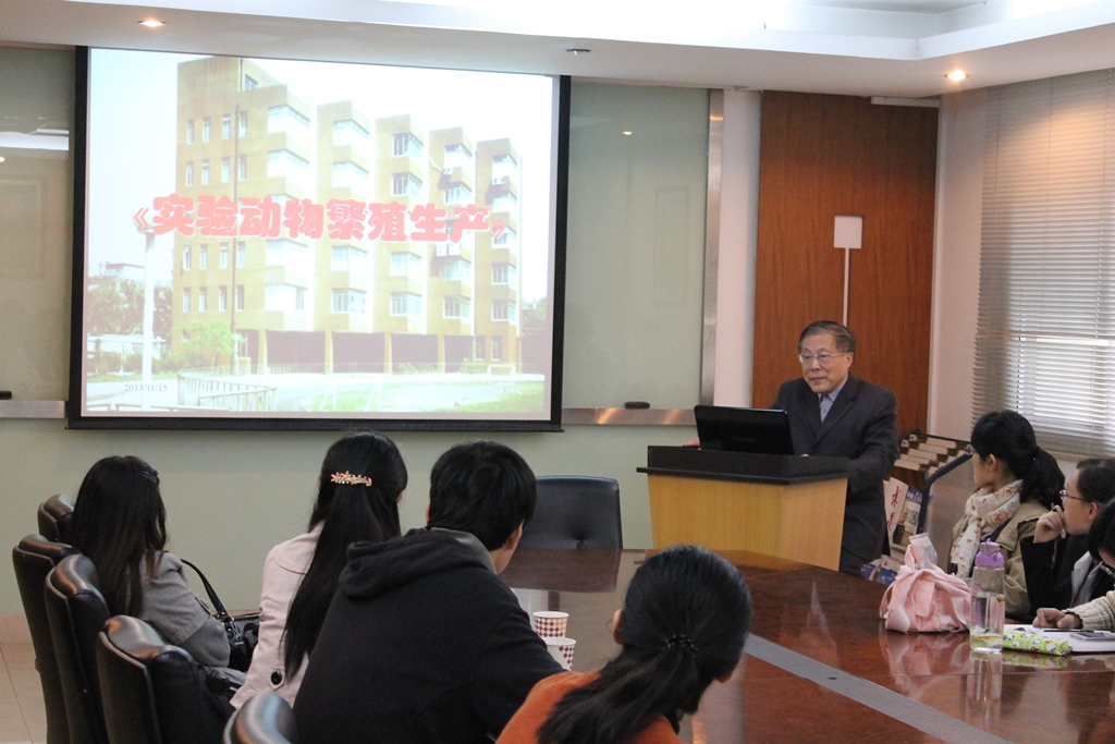 实验动物是脑功能基因组学重点实验室各位科研人员实现“从基因、细胞、神经元网络以及认知行为”等多层次研究神经系统功能的重要支撑条件,其繁殖保种又是保证实验动物质量与数量的基本条件。秉承“学习型”和“服务型”支部建设的思路,针对目前重点实验室老师和同学们在实验动物繁殖中出现的一些疑惑,脑功能教育部重点实验室教工党支部联合啮齿类实验动物中心举办了“实验动物保种繁殖系列活动”,本次活动分两个板块,第一板块为学术讲座,第二板块为参观学习。 第一板块于2013年11月15日上午九点在脑功能基因组学研究所一楼会议室举行,教工党支部邀请了实验动物领域专家潘振业教授做了题为“实验动物繁殖生产”的专题讲座。报告首先对常用实验动物饲育与繁殖的相关概念进行了讲解,并通过举例形象生动的解释了不同实验动物的繁殖技术,使同学们对实验动物繁殖的基本概念和技术有了一定的认识。之后报告从基本概念、种用动物选择、繁殖方法及种群管理四个方面针对封闭群及近交系动物的生产管理作了报告。报告结束后同学久久不肯散去,向潘教授请教在实验动物方面遇到的问题和疑惑。
