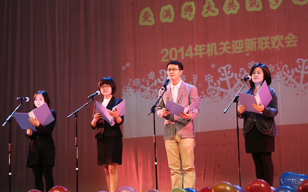 联欢会主持人研究生院唐婧琦、对外联络处张凯