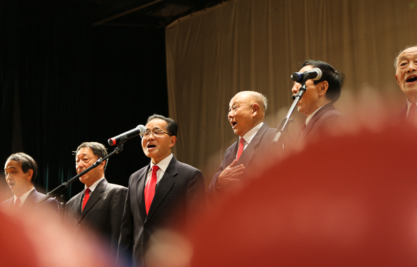 在老教授合唱团《红莓花儿开》、《忠实的朋友》的歌声中,“爱满师大•共筑梦想”2014年机关迎新联欢会于1月8日下午在中山北路校区大礼堂拉开帷幕。机关各部门近四百位在职以及离退休教职员工欢聚一堂,辞旧迎新、畅叙友情。校党委副书记副校长兼机关党工委书记任友群、副校长朱自强、副校长孙真荣与机关各职能部门负责人一同观看了演出。 任友群在致辞中首先谈到了举办本次联欢会的初衷,回顾了机关党工委成立以来所做的一些工作,还向大家送上了新春祝福,鼓励大家在新的一年继续保持优良作风,为学校发展做出更大的贡献。
