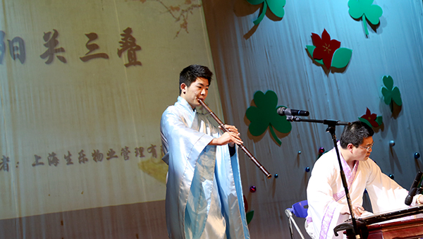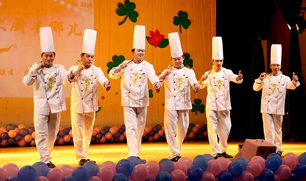 文艺汇演 “阳光总在风雨后……”唱出了校园环境管理中心员工的心声;生乐物业管理有限公司的琴箫合奏《阳关三叠》,如同天籁,令现场观众沉醉其中;宿舍与教学楼服务中心(2)员工舞动翩翩的红绸,敲起了节奏十足的腰鼓《越来越好》;膳食服务中心(1)、宿舍与教学楼服务中心(1)、修建装潢服务中心再次展现了团队的力量,《歌曲串烧》引发阵阵喝彩;膳食服务中心(2)的舞台秀《大厨去哪儿》秀出了员工们的青春活力;上海中快餐饮管理有限公司的舞蹈《全城热恋》节奏欢快、舞姿优美;房产物业服务中心的小品《小区创卫变奏曲》取材生活实际,演员们惟妙惟肖的表演引来大家阵阵欢笑;接待服务中心的《雪绒花》、宿舍与教学楼服务中心(1)的歌曲《知道不知道》以及留学生代表的激情四射的《非洲舞》等节目把演出推向了一个又一个高潮。 表彰大会和文艺汇演在大合唱《明天会更好》中圆满结束。