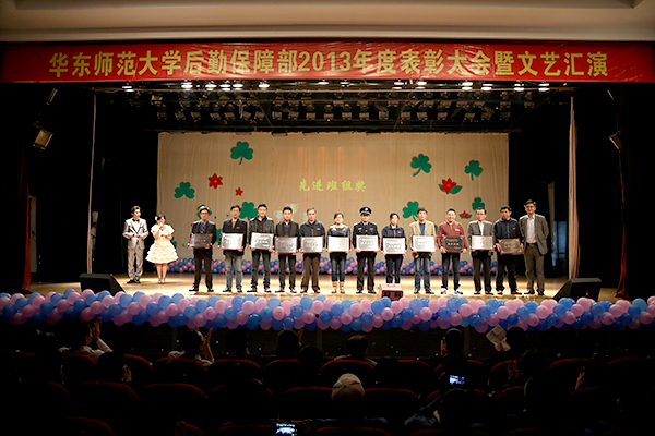 4月3日下午,后勤保障部2013年度表彰大会暨文艺汇演在中山北路校区思群堂举行。副校长孙真荣、国有资产管理处处长叶军、基建处处长王群、保卫处处长任开蕾、资产经营有限公司总经理兼党工委书记金之诚以及后勤保障部全体党政领导、职工代表700余人出席了大会。