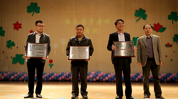 大会对后勤保障部2013年度先进集体和个人予以表彰 大会对后勤保障部2013年度2个先进集体、3个后勤服务质量考核优秀单位和12个先进班组、59名先进个人予以表彰。会上,表彰颁奖与表演节目穿插进行,各个环节安排紧凑,在厉行节约的同时,后勤保障部的文艺演出创新形式、内容丰富,全场气氛高涨,欢呼声不断。