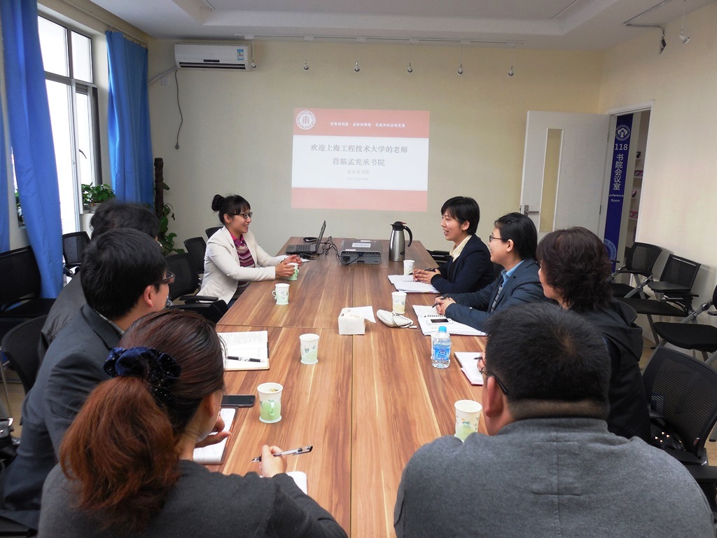 上海工程技术大学党委组织部副部长兼统战部副部长一行来书院访问交流 书院院长助理杨艳红热情接待,并代表书院对上海工程技术大学组织部副部长兼统战部副部长张可菡一行来访表示热烈欢迎。杨艳红带领来访老师参观了书院的社区空间,并依托社区走廊的宣传栏,介绍了人生导师咨询等孟宪承书院特色项目。 座谈会上,杨艳红围绕书院学生党建工作展开具体的介绍。介绍以学生党员的养成教育为主线,从书院的硬件设施、导师团队、学术科研、党团互动和教师素质五方面展开。杨艳红还重点结合书院学生党员师范性的特点,谈到书院依托“住楼制”的思政辅导成长的共同体和“导师制”的学业辅导成长的共同体的师生关系,构建书院社区化、立体化的学生党员发展和培养的模式。 张可菡一行对书院的热情接待表示感谢。双方还就高年级学生党员管理、党员发展考核指标等工作进行了深入交流和探讨。