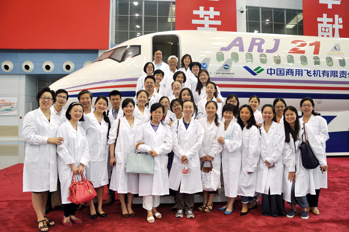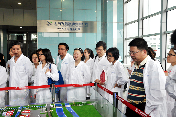 上海商用飞机制造有限公司人力资源部唐部长带领大家参观了总装车间、正在组装的ARJ21飞机、了解了ARJ21新支线飞机和大型客机的最新研制进展,参观了室外展区的真实飞机及室内展区的飞机模型,双方进行了友好深入的交流。接着,全体党员共同观看了ARJ21首飞的视频 ,并就我国商业飞机的发展积极提问。唐部长全面的介绍了中国商飞公司历史背景及发展现状,并且亲切地回答了老师们的提问。随后,学院党委书记黄瑾老师代表全体老师表达了对中国商飞公司的感谢,她谈到:虽然商飞公司和华师大学特学院从事的教育事业是两个行业,但商飞公司总装车间的挂着的“长期创新、长期攻关、长期吃苦、长期奉献”口号对我们同样具有启发意义和激励作用。祖国的繁荣和富强,是我们共同的使命和责任,我们应当在不同的领域为中国的复兴之梦而不懈奋斗、共同努力。最后,双方单位还互相交换了带有行业特色的礼品,以作纪念。 在本次活动结束之后,各位老师还进行了深入的交流,纷纷表示:通过此次活动,感受到大飞机项目不仅是国家的重特大项目,更是振兴中华民族的富国强民项目,大飞机项目的投资建设预示着我们的祖国已经踏上了伟大的民族复兴之路,我们教育战线上的党员同志们也要不甘落后,为祖国航空航天工业的发展,为祖国各行各业的建设培养优秀人才。