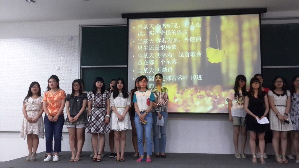 6月11日晚上六点,外语学院英语系翻译系本科生党支部在闵行一教108报告厅举行了毕业生党员欢送会。为了给即将毕业的学长学姐留下大学最后的美好记忆,2011、2012、2013级的同学各显其能,展示自己的才艺,将晚会的气氛逐渐推向高潮。