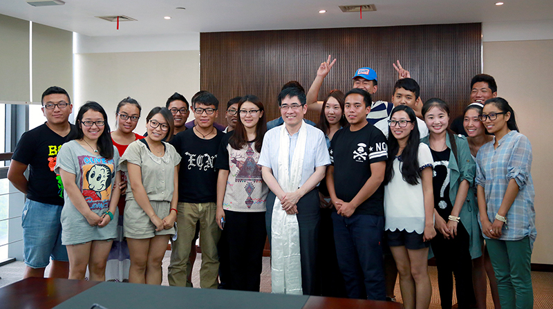 童世骏和与会的藏族学生合影留念 在掌声和欢笑声中,在眷恋与不舍的诉说中,座谈会渐渐进入尾声。童世骏对这群即将远行的藏族同学说:“毕业了,祝你们工作顺利、生活幸福!母校会一直惦记着你们,关注着你们的成长。最后还想说一句,希望你们将师大人勤奋、踏实、奉献的作风延续到工作中去,努力让更多偏远地区的藏族学生到内地来读书。”
