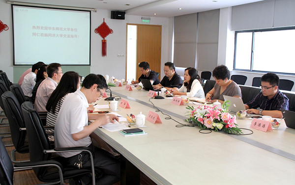 在同济大学调研交流 程静分别向两校同仁简要介绍了我校“大学工”改革的基本思路和运作状况,就思政系列教师职称评定办法、辅导员的管理与考评、辅导员队伍的培养与发展、书院和院系的沟通协调机制等问题进行了交流探讨;吕玉才、杜彬彬等就书院制建设、辅导员队伍建设、学生园区管理等问题与两校老师进行了交流学习。