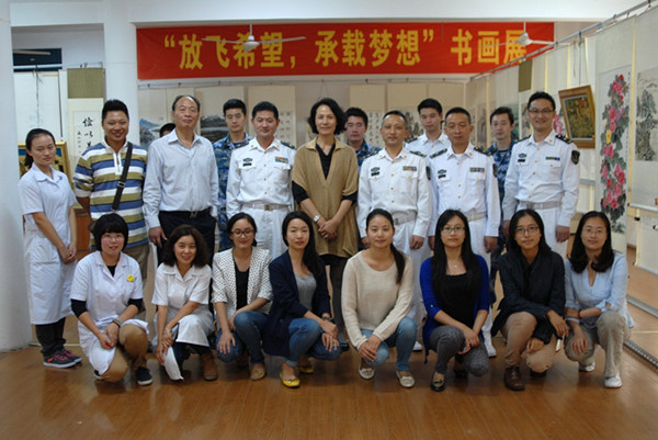 活动举办方合影 参观结束后,美术学系党总支书记李小英充分肯定了此次与海军干休所联合举办展览活动,强调此次活动有助于拓宽教工党支部发展空间,有利于提升组织生活质量。