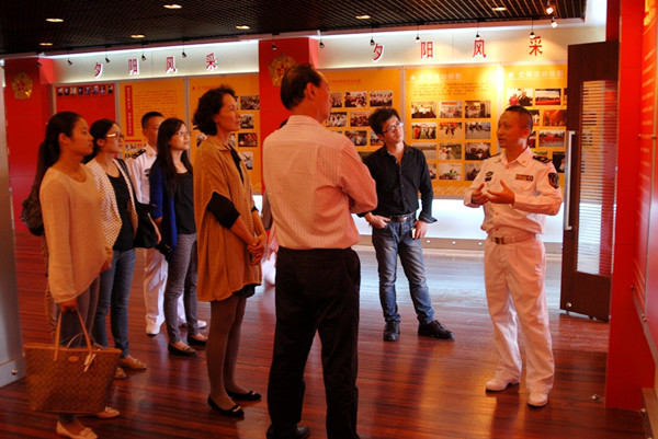 近日,美术学系教工党支部与虹口区海军干休所共同举办的“共庆新中国65华诞美术作品展”在虹口区海军干休所老干部活动中心举行。 为了共同筹办好这次美术作品展,美术学系教工党员精心策划安排。展览共展出60余件作品,涉及中国画、油画、漆画等多个画种,老中青三代创作者各擅胜场,具有浓郁的时代气息,视觉新颖,充满活力与朝气。在此次展览中,海军干休所书画协会会员们的作品也让科班出身的美术系老师赞叹不已,他们的作品主要展现祖国社会建设和都市生活的内容,多角度多方位地反映了中国人民的精神风貌,展现了中国人民追梦、筑梦过程中坚毅的品质以及为中国梦而努力奋斗的热情。 通过创作来塑造中国形象,弘扬社会正能量、传递积极向上的价值理念,这是广大美术学系教工党员点亮中国梦、弘扬中国梦的特有方式。 展览结束,美术学系教工党支部一行人兴致勃勃地参观该所荣誉室,海军干休所政委向美术学系教工党员们逐一介绍荣誉室的概况。荣誉室内,按前言、历史见证、光荣的经历、艰苦的战斗、崇高的荣誉等篇章,通过资料文献、老照片、实物等全面展示了离休干部的戎马生涯,以及他们发挥余热,关心下一代成长的各项成果。
