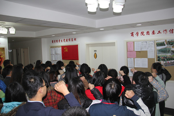 12月3日中午,商学院党委在法商南楼2楼大厅为新加入党组织的预备党员举办了入党宣誓仪式,以增强预备党员的自豪感和组织观念。