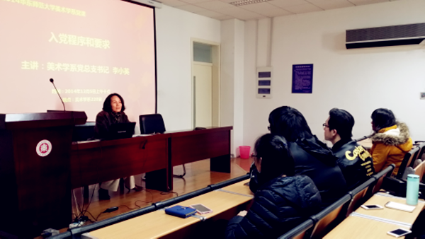 12月5日上午10时,美术学系第十三期党校在美术学系220教室举办,系党总支书记李小英受邀为学员们做了主题为《党员发展程序》的专题讲座。 课上,李小英老师首先肯定党校学员们的参与热情,希望大家继续努力,不断进步,争取早日入党;并指出成为合格党员是一项光荣而艰巨的任务,需要经历递交入党申请书,成为入党积极分子,预备党员、正式党员等一系列程序。在这期间,学员们要端正入党动机,坚定理想信念,接受组织的各种考验,保持积极性和主动性,自觉按照党员标准严格要求自己,加强党性锻炼,提高自身素质,争取早日加入中国共产党。