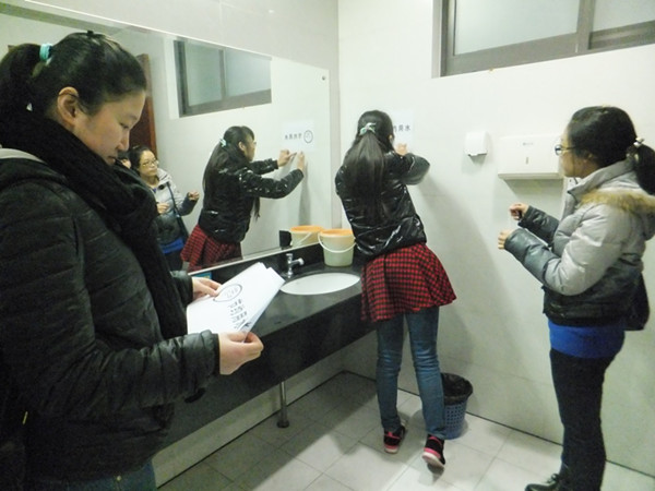 第六组学员则在生命科学学院张贴温馨标语,温馨的提示、细腻的关怀、小小举动,却让学院充满了温暖。
