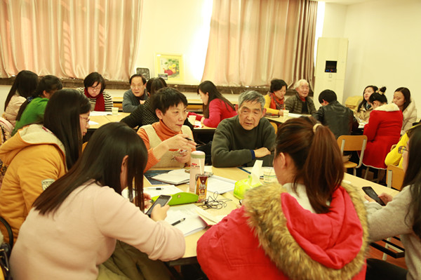 随后,以系所为单位,7位嘉宾老师与各系所党支部书记及支委分为4个小组,围绕学生党员标准进行小组讨论。学部关工委副主任钱景舫老师在教育系组的讨论中指出,学生党员标准要便于考察,符合学生实际生活。在小组讨论中,各支书、支委分别汇报所在支部前期的内部讨论意见。经过半小时的热烈讨论,在嘉宾老师的指导下,每个小组推荐一名代表对本组商议出的党员标准进行汇报,并征求在场老师及学生支委的意见。