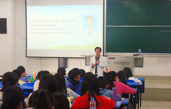 4月1日下午、三教102室,由化学与分子工程学院和数学系联合举办的2015年党校如期开班。首次党课特邀全国首届高校思想政治理论课教学能手、上海市高校思想政治理论课名师工作室主持人、我校马克思主义学院王建新教授担任主讲嘉宾。联合党校班主任于国妮、李小玲出席会议,开班仪式由李小玲老师主持。 课上,王建新教授围绕“扬起理想信念,奔向美好未来”主题,论述了关于“人为什么需要理想”、“现在的大学生对于理想的态度”、“人为什么能够拥有理想”,以及“理想信念与大学生成长成才”等内容的个人感悟和主张。提出青年学子具有广阔的发展空间和较强的可塑性,在求学生涯中要明晰个人发展规划,寻找自身差距并努力改进完善,不断实现人生“理想”。