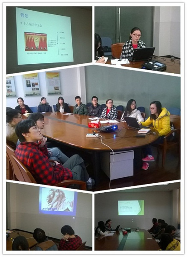 学习会以领会中央“四个全面”精神为切入点,党员们围绕“四个全面”的内涵,交流了彼此的学习心得体会,深刻理解“四个全面”发展战略在新形势党和国家发展布局中的重要意义。 随后,支部党员们选取十八届四中全会《决定》中的重要议题进行了研讨。2013级支部党员刘辉平、熊娜通过搜集相关时事新闻资料、制作详尽的幻灯片的方式,向党员们介绍了议题的背景和意义,并带领党员们深入讨论关注环保的重要意义以及依法治国对当代大学生的影响。 期间,与会党员们均积极踊跃地参与了交流讨论。党员们一致认为,在推进环保事业发展的进程中,党员应脚踏实地参与环保,从身边的小事做起,增强环保意识;在建设法治中国的过程中,每个公民都有责任和义务参与进来,党员更是如此。全面推进依法治国是实现中国梦的需要,是实现中华民族伟大复兴的必经之路。 通过理论学习,党员们对党中央的精神有了更深层次的理解,增强落实上述精神的主动性。