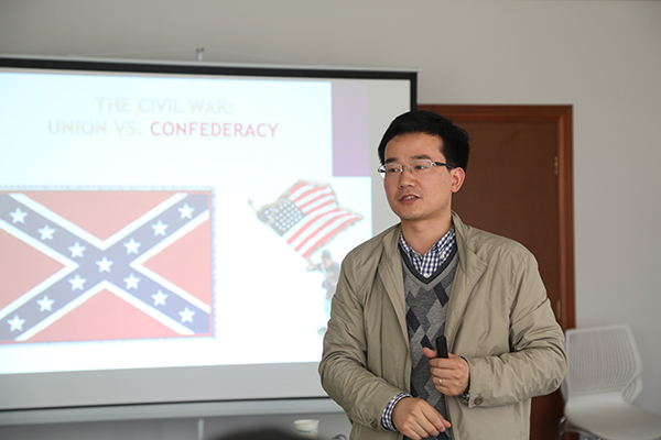 机关青年英语沙龙:美国电影赏析交流会举行 电影赏析会全程用英语进行,陈俊松老师首先介绍了美国南部阿拉巴马州的地理环境、历史文化等概况,并图文并茂地展示了美国南北战争及民权运动的历史沿革。随后,他又向大家普及了基于电影表现手法、电影主旨、历史三个维度的电影欣赏方法。在随后的片段赏析中,陈俊松穿插了对电影主题以及美国南北部风土人情、语言使用差异等问题的讨论互动,进一步加深了大家对电影主旨的理解,开阔跨文化人文视野。