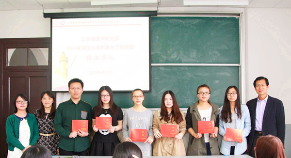 4月29日下午,公共管理学院党委2015年入党积极分子培训班结业典礼在文史楼316教室举行。学院党委书记高向东,副书记鲁静,团委副书记、本次培训班班主任杨亚星以及64名学员出席典礼。结业典礼上,鲁静老师宣读了表彰决定,高向东老师为每位学员颁发结业证书并对10名优秀学员进行表彰。随后,鲁静老师总结了本次培训的基本情况,并对学员们提出了加强学习、加强思考、加强实践三点要求,她希望学员们要更加努力,将所思所学应用于实践,不断提高综合素质,争取早日入党。