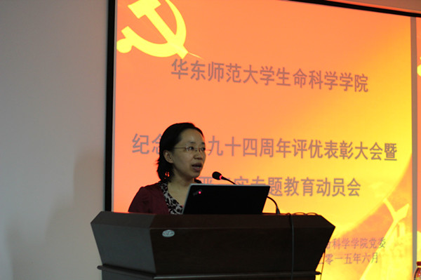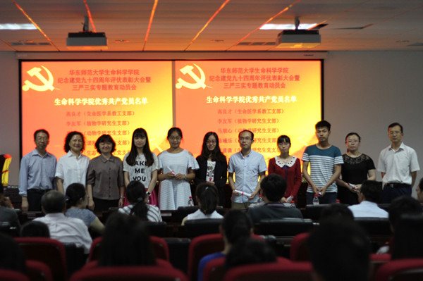 生命科学学院纪念建党94周年评优表彰大会暨三严三实专题党课及教育动员会于6月24日在生科院楼534报告厅举行。院党委书记房建军、院党委副书记兼副院长徐敏华、院党委委员、教工党支部和学生党支部的党员代表以及全体毕业生党员参加了此次大会,会议由院党委副书记兼副院长徐敏华主持。