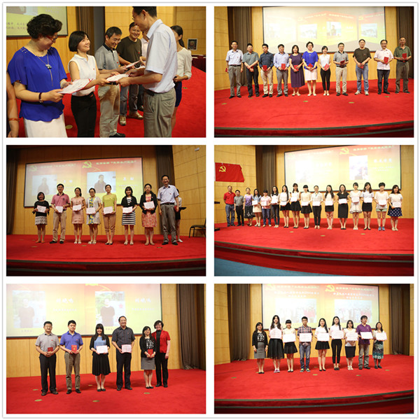 全体师生党员齐唱国歌 表彰大会在全体师生党员高唱国歌声中拉开了序幕,学部党委书记汪海萍代表党委宣布“七一”表彰决定,授予沈晔等20名教工“优秀共产党员”、华晨琳等34名“优秀学生党员”、万明霞等5名“优秀党务工作者”,以及8个“先进基层党支部”荣誉称号。教育学部党委书记汪海萍、学部主任袁振国、学部党委副书记万明霞、人力资源部主任赵丽、学生事务部主任孟永红、国际事务部主任杨福义分别为优秀党员、先进党支部获得者颁发证书。