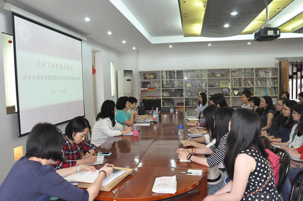 6月18日,对外汉语学院2015届毕业生党员教育活动在学院201会议室举行。活动以“党旗下的梦想与责任”为主题,邀请学院资深党务工作者包文英老师,就“现实背景下如何保持党员先进性等问题”与毕业生党员进行了深入的交流。对外汉语学院党委书记黄薇、党委副书记兼副院长王郦玉、全体辅导员,以及对外汉语学院、国际汉语教师研修基地2015届毕业生党员参加了此次活动。