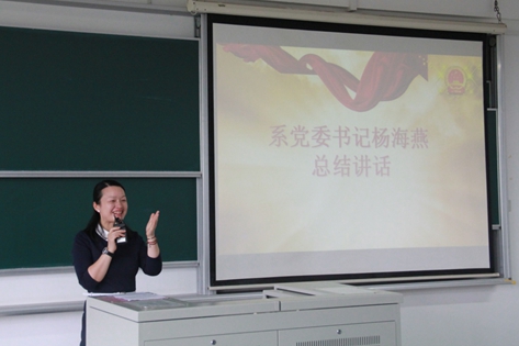 最后,杨海燕书记在总结讲话中回顾了过去一年哲学系党组织工作开展情况,指明了取得的成绩。同时对系党员的辛勤付出表示感谢,对优秀党员获得者及党课顺利结业的入党积极分子表示了衷心的祝贺,并勉励党员及入党积极分子们要牢记党的宗旨,进一步增强责任感和使命感,在工作中充分发挥党员的先锋模范作用,为开创哲学系各项事业的发展努力奋斗。
