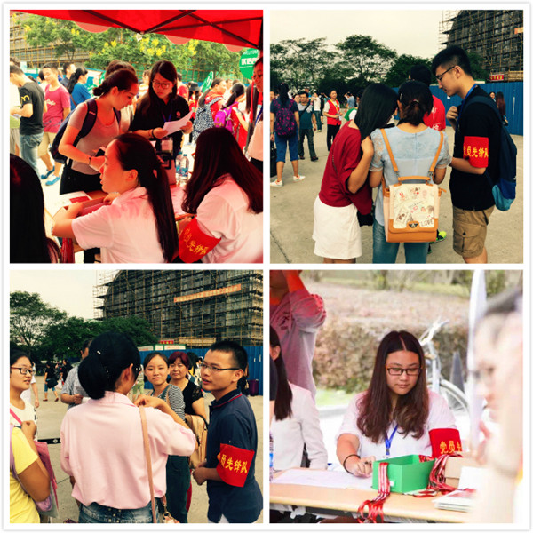 一个口号、一个微笑宣示党员的理念 在繁忙的迎新工作中,学生党员进行了热情、高效的服务。他们向前来报到的新生和家长介绍学校情况;为他们搬运行李;引导他们办理入学登记手续等,于第一时间让新生感受到党组织对他们的关怀,感受到党员的先进性和模范性,在潜移默化中增进对党组织的认识。与此同时,学生党员亮出身份服务新生,增强了责任感,也促进学生党员不断提高自我要求以更好地发挥先锋模范作用。一幅幅温馨的党员服务标语,一个个醒目的党员服务岗位,一群佩戴“党员先锋队”袖章的身影,构成书院迎新战场上一道亮丽的风景线。