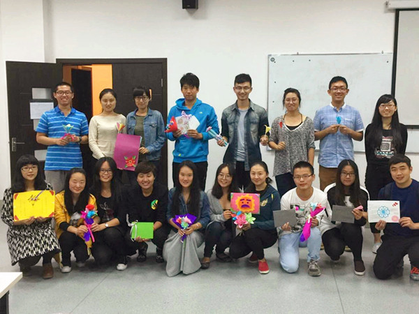 学生党员制作赠送给老党员的绢花和贺卡 孟宪承书院举办本次活动意在发挥学生党员的示范作用,弘扬中华传统文化和美德。