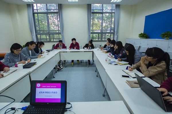 为贯彻落实全面从严治党要求,巩固党的群众路线教育实践活动成果,持续深入推进党的思想政治建设和作风建设,孟宪承书院教工党支部于11月9日下午召开批评与自我批评专题民主生活会。书院领导班子共同参与本次民主生活会,会议由书院党委书记兼院长吴薇主持。 经过会前的认真准备,全体教工党员秉承坦诚相待的原则开展批评与自我批评,认真总结和反思自己在思想、学习、生活和工作中存在的问题,深刻剖析了问题根源,从方方面面举例总结。会上总结的问题主要表现在以下几个方面:理论素养有待提高,党性修养和理论学习有待于加强;工作方法亟待改进,工作效率需要提高等。同时,各位教工党员本着实事求是的原则对其他同志提出建设性意见。