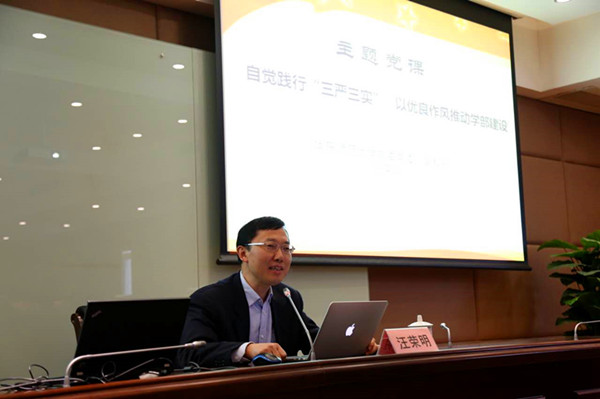 校党委常委、副校长汪荣明讲授“三严三实”专题党课 在党员大会环节,任国华表示自学部成立以来,各方面工作稳步推进。学部拟成立经济学院、工商管理学院、公共管理学院、统计学院以及学部行政等五个党支部。并强调教职工基层党支部的组建是件严肃、认真的大事,所有教职工党员要认真对待,依规推选出合适的支部领导团体,注重发挥党支部的作用。