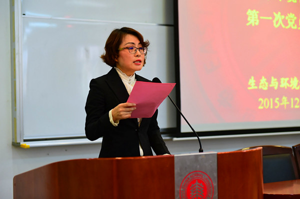 学院党委书记潘靓作主题报告 大会审议并表决通过了《中共华东师范大学生态与环境科学学院党员大会选举办法》、大会总监票人和监票人名单、党委委员候选人名单。随后进行大会投票选举,选举产生陈小勇、吴丹、张勇、路葵、潘靓为第一届生态与环境科学学院党委委员。