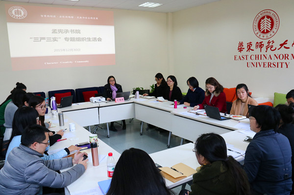 为进一步践行“三严三实”、增强党员意识、发挥党员作用,孟宪承书院党委于2015年12月30日召开了“三严三实”专题组织生活会,书院党委书记兼院长吴薇主持会议,书院全体教师党员参加生活会。