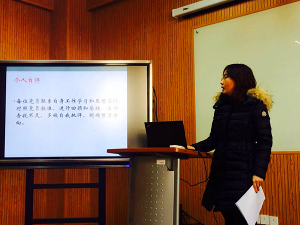 音乐学系教工支部召开“三严三实”专题组织生活会暨民主评议党员工作会议 本次生活会共分为个人自评、党员互评、支部委员会向党员报告工作并接受评议三个环节。在个人自评环节,每位党员联系自身工作学习和思想实际,对照党员标准,进行回顾和总结,主动查找不足,开展了自我批评;在党员互评环节,与会党员针对我系面临的实际问题,展开充分的讨论,不回避问题,进行了坦诚深入的交流。随后,姜蕾老师代表教工党支部委员会向党员报告了本年度的主要工作,特别是针对支部工作中存在的薄弱环节,提出改进措施,参会党员就支部工作进行评议,并围绕如何加强党支部建设,创新活动内容和方式,发挥党组织和党员作用进行了讨论。
