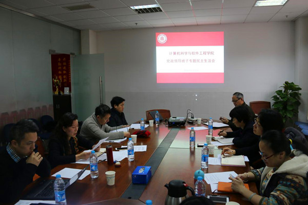 2016年1月13日下午,计算机科学与软件工程学院在理科大楼B211召开党政领导班子专题民主生活会,副校长梅兵、学院院长何积丰、院党委书记李恺、常务副院长王长波、副院长王晓玲、副院长姜宁康、副院长蒲戈光、副书记兼副院长洪燕等领导班子成员参加了本次民主生活会,会议由学院党委书记李恺主持。