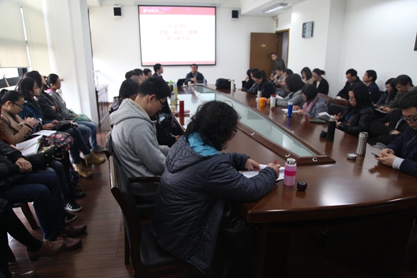 4月6日下午,外语学院党委在319会议室召开了全国“两会”精神学习报告会,邀请全国人大代表、民进中央委员、民进上海市委副主委、我校发展规划部部长陈振楼教授为师生解读全国“两会”精神。学院全体教职工党员及部分学生党员代表聆听了本次报告,报告会由外语学院党委书记俞黎阳主持。