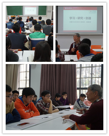 4月9日下午,计算机软件学院关工委王行恒、王能两位教授应邀在中北校区地理馆123室与计软学院·河口院联合党校学员们就学习方法、研究心得进行面对面交流。 王行恒教授以“循序渐进,因势利导,打好基础”为主题,强调科学研究首先要克服毛躁心态,注重根据学科规律循序渐进;要不断扩展知识面,注意学科交叉。此外,他还结合自身科研经历,指出科研创新是由量变到质变的积累,科学研究需要加强团队协作。最后,他表示希望计算机与软件学院、河口院的入党积极分子要多交流,找到科研合作的契合点。