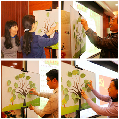 学院教工党员们就如何争做“合格党员”发表各自见解 随后,教师党员们结合本职工作,一一谈了本学期里作为一名合格的共产党员要做成的一件实事,并在责任树上贴下了自己的愿望。