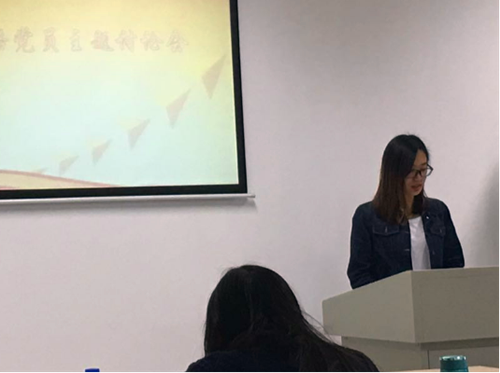 支部委员董才敏主持讨论会 会上有新老党员、预备党员和积极分子共四名同学发言,交流分享如何落实“两学一做”,成为合格共产党员的心得与感悟。参会的同学积极发言,各抒己见,气氛热烈。 优秀党员同学以自己这几年的切身经历,深刻地分享了作为一名党员应该有的政治觉悟和素养,并表示学生党员要在加强学风建设、提升综合素质、提高创新创业能力、带领同学共同进步等方面发挥先锋模范作用。