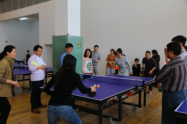 为促进人事处全体成员保持积极健康的生活态度和生活方式,增强党支部的凝聚力和战斗力。人事处党支部联合处工会小组于2016年4月13日下午在闵行校区体育馆举行了趣味乒乓球赛。 比赛以团体赛形式进行,以积分形式计分,积分多的团队获胜。通过抽签方式划分了两支参赛团队,并推选出两名队长。比赛分竞技大赛和趣味比拼两个环节,每队队长负责本队参赛队员的报名组织工作。参赛队员积极上场比拼,通过团体竞技赛、高手终极PK赛、百发百中、球逢对手、急速传递等五个环节的激烈角逐,两队最终打成平手。
