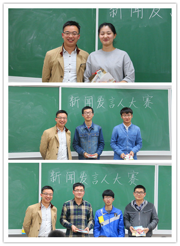 模拟记者提问 发言结束后,辅导员叶林娟、朱丹对各位发言人、提问记者的表现做了点评,给发言人提供中肯的意见和提升建议。最后,计算机科学与软件工程学院2014级王迎晓作为国台办发言人获得本次大赛一等奖。