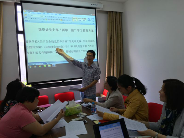 5月18日下午,根据学校《关于在全校党员中开展“学党章党规、学系列讲话,做合格党员”的学习教育方案》(华师委[2016]13号)和《机关党工委“两学一做”学习教育落实方案》的文件精神和工作要求,国资处党支部在干训楼会议室召开了“两学一做”学习教育动员会。
