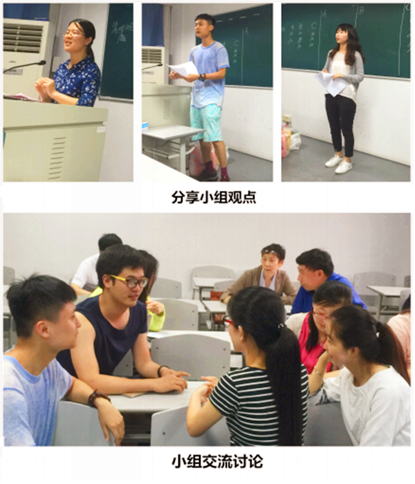 接着,教信系学生代表为大家安排了丰富多彩的活动:关注两会,解读两会热点,播放热点视频,安排讨论和互动环节,分A、B、C三个小组讨论,并互相提问和现场打分,就“你最关心的民生问题”三个小组各抒己见,提出问题和解决方案。现场气氛热烈,小组代表讲解绘声绘色,大家掌声不断。