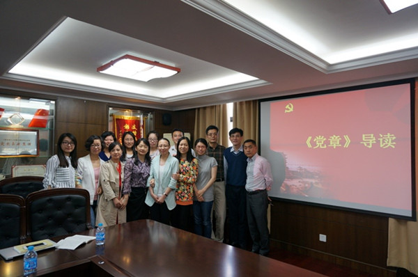 “两学一做”推进会现场 会上,基础教育与终身教育处支部书记吴爱芬首先向各位党员同志说明了此次开展“两学一做”学习教育活动的背景及学校层面对本项工作的整体部署及相关精神,强调全体党员同志予以高度重视,加强学习,认真实践。随后,与会党员集体通读、学习了《关于在全校党员中开展“学党章党规、学系列讲话,做合格党员”学习教育方案》与《机关党工委“两学一做”学习教育落实方案》,充分领会学校及机关党工委对基层党支部及党员同志提出的更为具体的学习要求与举措。据此,两个支部提出了自己的学习方案,有针对性地结合本支部党的建设、党员队伍管理、党员作用发挥等方面制定学习计划,充分调动和发挥党员同志的主观能动性,将理论学习与问题解决贯穿学习教育活动始终。 之后,校党委组织部副部长徐继玲应邀作《党章》导读专题讲座。徐继玲同志首先向党员同志们介绍了我校党员队伍的发展情况及近年国家在党员队伍管理方面提出的指导思想与政策举措。