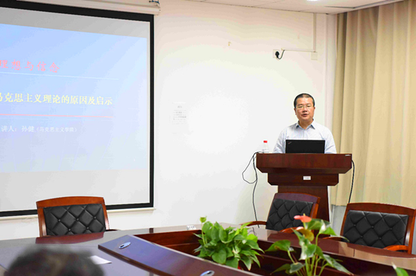 2016年6月8日下午,生态与环境科学学院在闵行校区资环楼435会议室举办“两学一做”系列辅导讲座,我校马克思主义学院党委书记孙健应邀为学院全体教工党员和毕业生党员做主题为“中国接受马克思主义理论的原因及启示”讲座,讲座活动由学院党委副书记路葵主持。 孙健老师从中国共产党入党誓词切入主题,从中国共产党的理想和目标、马克思主义理论在中国的早期传播、马克思主义理论在中国实践的经验和教训等方面为党员们阐述了中国接受马克思主义理论的原因和启示。师生党员通过孙健老师的讲座更加清楚认识到坚定理想信念、坚守精神追求的重要性。