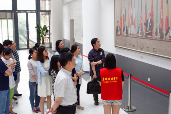 两支部党员同志参观李政道图书馆 交流会后,两支部党员同志一同前往上海交通大学参观了李政道图书馆,徜徉在展览厅内,观看李政道先生的研究手稿、信函、美术作品、诺贝尔奖章及各类证书等珍贵资料,聆听讲解员细细解说背后的故事,党员们不仅为李政道先生对科学孜孜以求、享受其中的求学精神所感染,更为他心怀祖国的赤子之心、提携后辈的无私精神所感动。支部正值开展“两学一做”学习教育,李政道先生的大爱大义、为人为学为支部党员们从事教育工作“做合格党员”树立了很好的榜样。