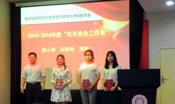信息学院“优秀党务工作者”:蔡小梅、经雨珠、黄婷